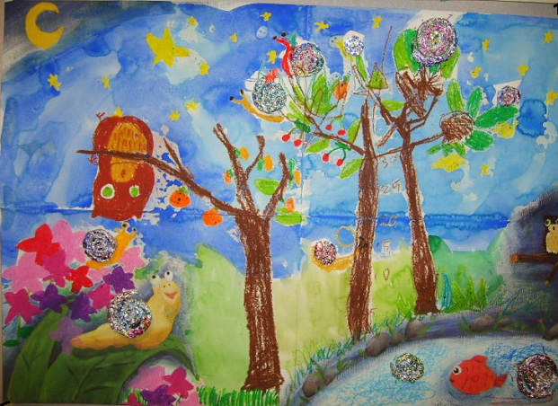 자신이 좋아하는 색들로 화지를 꽉 채운 그림입니다